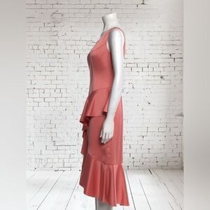 Marchesa Notte Coral Sleeveless Ruffle Floral appliqué Dress.