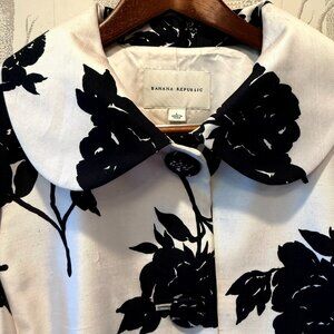 Banana Republic Black Ivory Floral Silk Topper Coat Jacket- Size Large