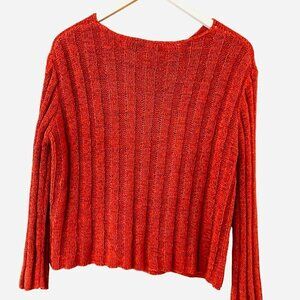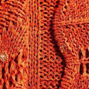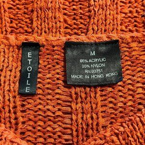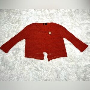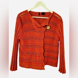 Etoile Burnt Orange Open Knit One Button 3/4 Sleeve Cardigan Sweater