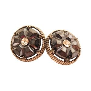 Vintage Gorgeous Emerald & Pale Green Two Tone Rhinestone Flower SB Earrings