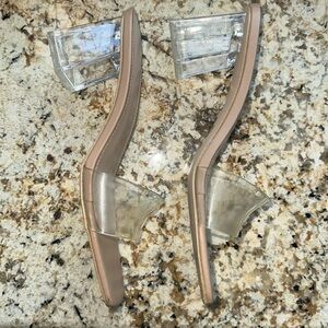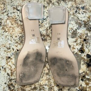 BCBGENERATION Clear Comfort Luckee Square Toe Block Heel Slip On Heeled Sandal