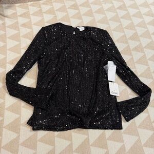 NWOT CeCe Women's Long Sleeve Crew Neck Sequin Blouse