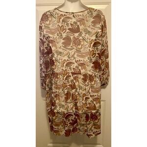 Two By Vince Camuto Shirt Dress Sheer Floral Long Sleeve XXL 2X Burgundy Cottage
