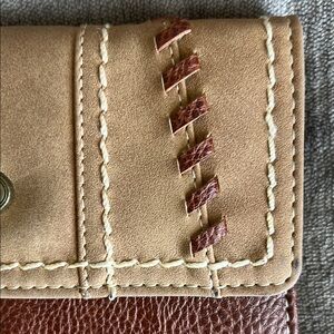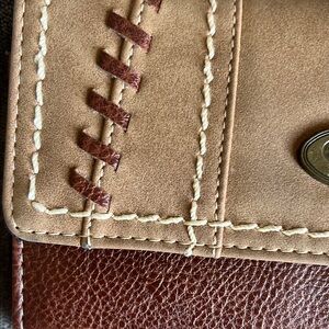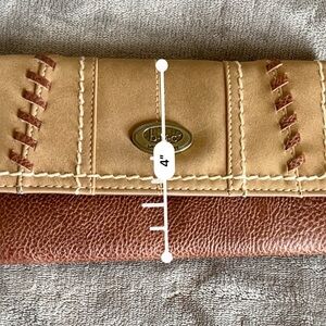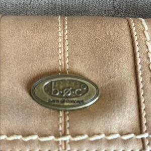 Stylish tan wallet by b.o.c. Features stitched detailing. Compact and elegant design.