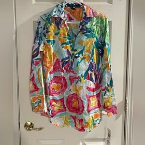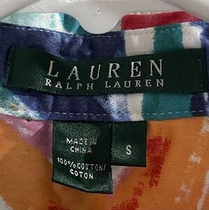 NWT Lauren Ralph Lauren Vintage Y2K Womens 100% Cotton Oversized Multicolor V Neck Tunic Shirt Size Small