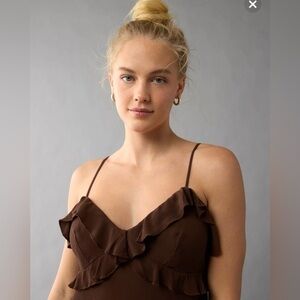 NWT American Eagle Outfitters Brown Ruffle Mini Dress Size L