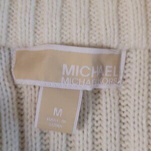 Michael Kors faux fur sweater jacket. In like new condition and stunning! The cream and brown tones create a luxurious and versatile piece, perfect for layering or wearing on its own. The button-up design adds a touch of sophistication, while the soft faux fur provides warmth and comfort. Lined. Measures 27L x 17 shoulder to shoulder x 26 sleeves x 20 W. Stretchy and ribbed knit. Beautiful!