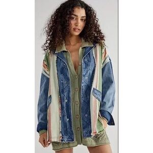 Free People Blanket Stripe Denim Shirt Jacket