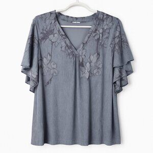 IT Gray Floral Ruffle Sleeve Blouse Top Women’s XL Tunic