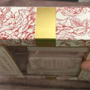 Elegant rose-scented set. Includes body mist, soap, and hand cream. Ideal for indulgence. NWOT