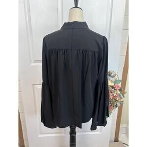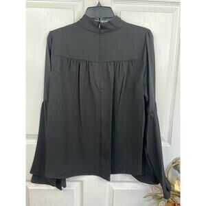 T Tahari Blouse Womens Size M Black Mock Neck Keyhole Large Bell Sleeve Chic