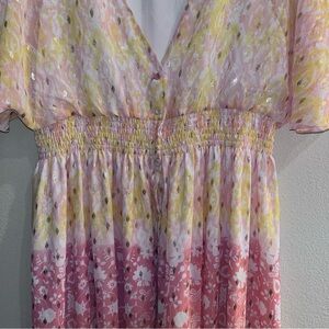 House of Harlow 1960 Metallic Boho Floral Maxi Dress Size Small