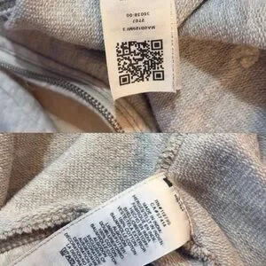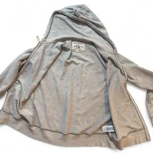 True Religion Light Grey Zip-Up Hoodie with Navy Velvet Logo Graphic — L - Y2K