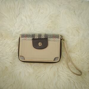 Spartina 449 Wymberly Linen Leather Plaid Zip Removable Strap Wristlet Clutch