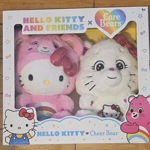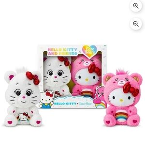 Charming Hello Kitty and Care Bear plush duo. Soft and cuddly. Perfect for playtime and snuggles.