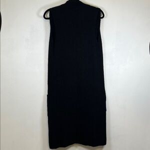 Stylish black sleeveless cardigan vest. Perfect for layering. Size not shown on tags but measures out as a small. Please see measurement pictures.