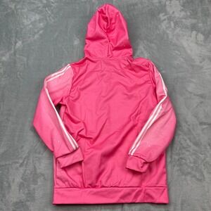 Vibrant pink ombre tracksuit set featuring a zip-up hoodie and snap-button pants. The hoodie is adorned with scattered white speckles, white striped accents on the sleeves, and bold graphic text. The matching pants feature a comfortable elastic waistband with a drawstring, white striped accents along the sides, and functional snap buttons down the length of each leg. This stylish set is perfect for athleisure wear.