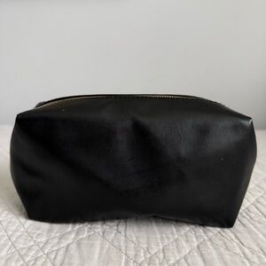 Elegant Yves Saint Laurent toiletry bag. Crafted in black with gold zipper and logo. Ideal for travel essentials.