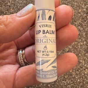 100% natural lip balm with a decorative blue and yellow design.