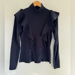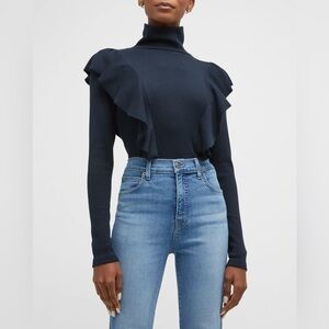 Veronica Beard Jeans Freida Ruffle Turtleneck Top in Navy