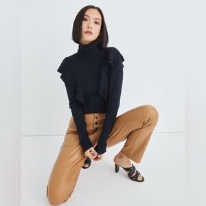 With exaggerated ruffles at the shoulders and down the front, the Freida turtleneck adds glamour and femininity to your everyday style. Made from a ribbed stretch-cotton knit, this will be a welcome addition to your closet. Wear yours with high-rise jeans and finish with booties. Effortless but elevated, done right.