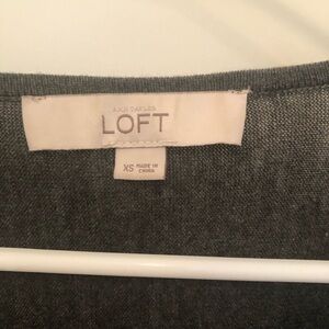 LOFT cardigan, LOFT open front cardigan, gray cardigan, grey cardigan, light gray sweater, medium gray, charcoal gray, slate gray, steel gray, graphite gray, ash gray, heather gray, neutral cardigan, solid cardigan, draped cardigan, waterfall cardigan, lightweight sweater, layering cardigan, workwear sweater, office cardigan, casual knit cardigan, travel sweater, capsule wardrobe staple, women’s cardigan