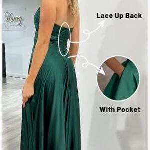 Elegant Strapless Satin Blue Gown size 12 new with tag