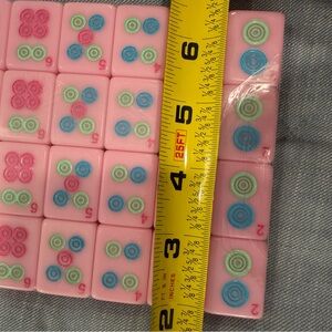Enjoy a game night with this stylish pink Mahjong tile set. Perfect for adding a pop of color to your collection. Brand new in packaging.