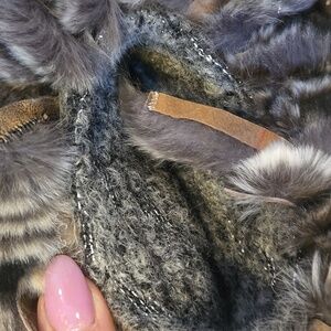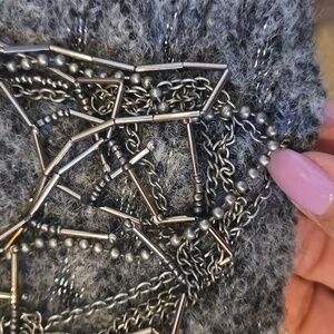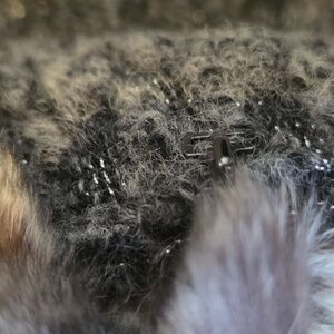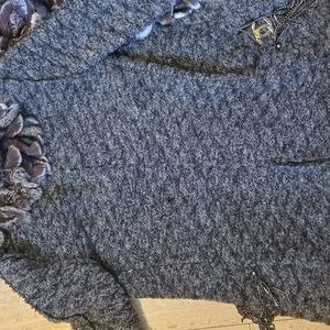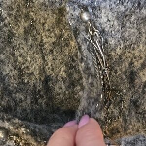 RARE Gray Metallic Accent Cardigan Sweater with Feather Accent Trim