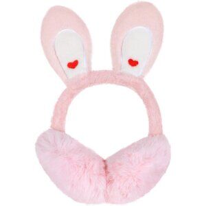Women's Pink Lovely Bunny Earmuffs Winter Warm Plush Foldable Soft Ear Warmer