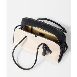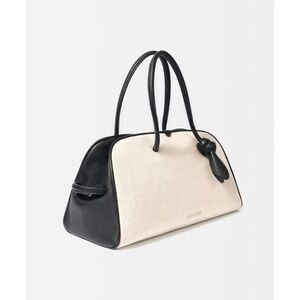 JACQUEMUS Turismo| White Linen Bowling Bag Black Leather Trim | NEW AUTHENTIC