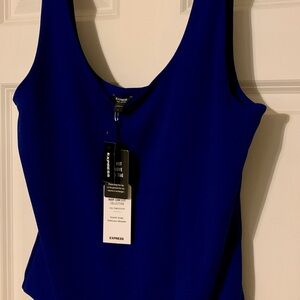 NWT cobalt blue bodysuit, large.From Express. Sleeveless. Perfect for any occasion, this top offers both comfort and elegance. Has spandex with great shaping features. Soft, smooth fabric.