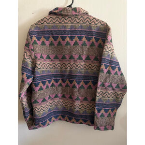 Women's NEW IDENTITY Pink Blue Patterned Vintage Style Full Zip Jacket L