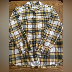 American Eagle Yellow and Black Plaid Button Down Shirt