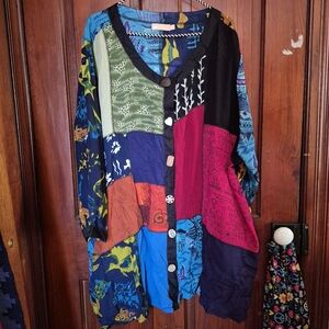 LA Cera Colorful Bohemian Button Down Top 4X Tunic Festival