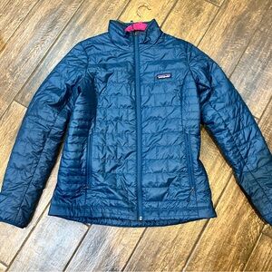 Lightweight and warm. Quilted design with hood. Ideal for outdoor activities. Packs/folds into its own pocket for easy packing. Only worn a handful of times. Warm and wind resistant. No defects or signs of wear.