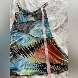 Forever21 Y2K Mesh Patchwork Mini Slip Dress Small Retro Skater Boho Fairycore