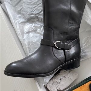 NWT Ralph Lauren Margarite Black Leather 1" Heel Riding Boots Size 9.5 wide calf
