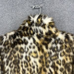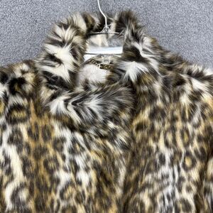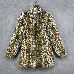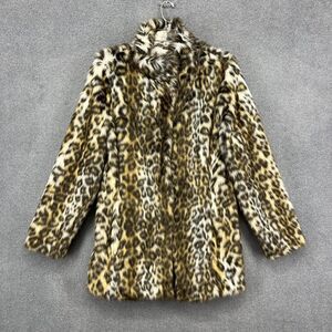 Eliza J Coat Womens Large Brown Faux Fur Animal Print Button Mid Length Jacket