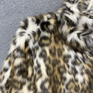 Eliza J Coat Womens Large Brown Faux Fur Animal Print Snap Mid Length Jacket