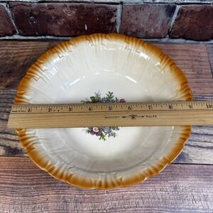 Vtg Homer Laughlin Serving Bowl Rib Floral Burnt Orange Rim 9" A47N8 USA MCM