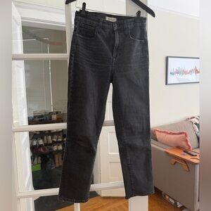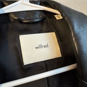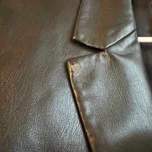 Stylish black leather blazer with a sleek design. Perfect for any occasion. Some peeling shown in photos above. Otherwise in great condition.