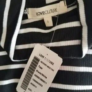 Black & White Small Long Top by Love Culture Juniors Striped Mock Turtle Neck