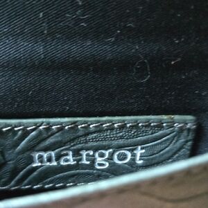 Elegant blue/gray wristlet clutch with intricate embossed design. Perfect for adding a touch of sophistication to any outfit. Features a snap closure, a braided leather strap, 2 inner slip pockets, an id holder and room for 5 cards! 6 x 4 x .25. In Excellent pre-loved condition with only minor signs of normal wear. The only callout is that one side was bent in shipping!