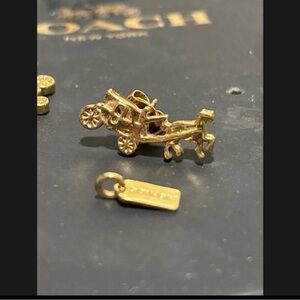 Pink stage coach with horse signature Coach wristlet. Pebble leather! New without tags! Red Coach necklace. 16 inches and new with tags!