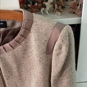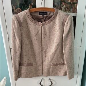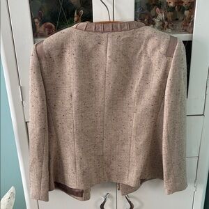 Jones New York Women's Tan Jacket sz 14 Tweed Gold Metallic euc