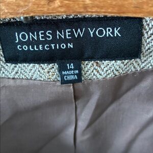 Elevate your wardrobe with this elegant tan jacket from Jones New York. Perfect for any occasion, this jacket offers a sophisticated look with its classic design and neutral color.