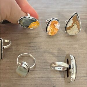 Lot of 17 sterling silver and stone rings in various sizes. Each one is marked 925. They are absolutely gorgeous and in perfect condition with no flaws whatsoever.