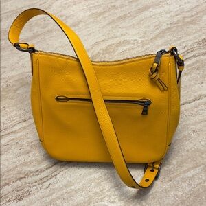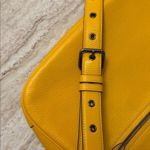 This is a Coach Ellie File Shoulder bag in vibrant sunflower yellow soft pebbled leather.