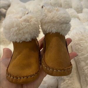 Barely used. Adorable brown leather booties by Clarks. Perfect for little feet. Size 6-9 months. Comes from a pet free, smoke free home.
